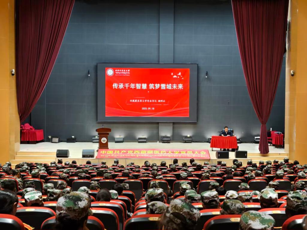 随后,学校党委书记鞠明兵以“传承千年智慧 筑梦雪域未来”为题授课,从四个维度与新生深入交流,为其锚定大学方向。书记结合西藏藏医药事业发展的历史脉络与时代价值,强调藏医药作为中华优秀传统文化的重要组成部分,千百年来守护着人们健康,是传承民族智慧的重要载体。他鼓励新生将个人理想融入国家发展与行业需求,以“传承藏医、服务社会”为初心,树立“学藏医、爱藏医、兴藏医”的坚定信念。针对藏医药学科“理论+实践”的特点,书记叮嘱新生既要扎实掌握藏医药经典典籍、基础理论,也要重视临床实践能力培养,主动参与实验室研究、附属医院见习等活动,多向授课教师、行业前辈请教,在“学思用贯通、知信行统一”中提升专业素养,为未来从事藏医药诊疗、研究、传承工作打下坚实基础。