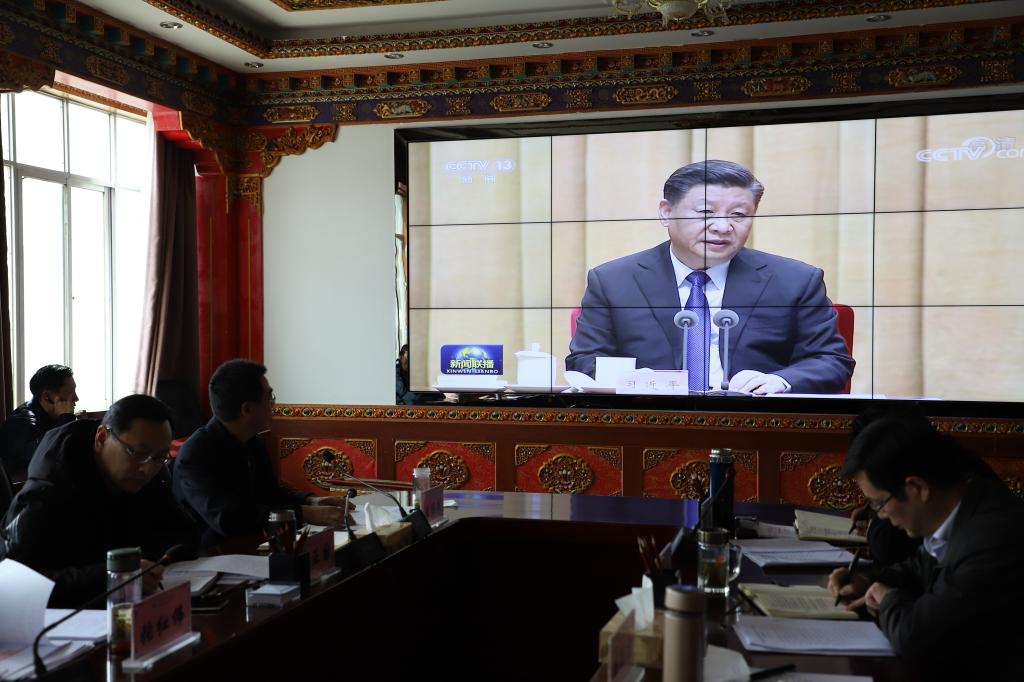 会上首先观看了《新闻联播》关于党中央党史学习教育动员大会报道视频,传达学习了党中央有关通知精神。鞠明兵在全文传达习近平总书记在党史学习教育动员大会上的讲话后指出,今年是中国共产党百年华诞,也是“两个一百年”奋斗目标历史交汇的关键节点,是西藏和平解放70周年,党中央决定在全党开展党史学习教育,并召开了动员大会下发了相关通知,习近平总书记亲自出席动员大会并发表重要讲话,为我们开展党史学习教育指明了前进方向、提供了根本遵循。我们要深刻学习贯彻习近平总书记重要讲话精神,领会和把握党史学习教育的重大意义、目标要求、重点任务、工作安排,切实增强开展党史学习教育的思想自觉和行动自觉,为学校开展好党史学习教育奠定良好基础。