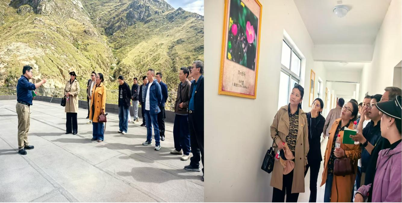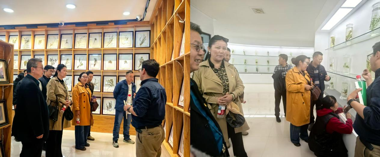 在旦增曲培老师的引导下,党员们参观了基地的教学实践与标本储存室。从新鲜药材的初步筛选处理,到依照传统工艺进行清洗、晾晒、炮制,再到最终的分类整理与储存,旦增曲培老师讲解了藏药制作的全流程,让党员们清晰了解到藏医药文化传承与现代教学科研实践的结合路径。同时,展示区陈列的干制药材标本、浸泡保存的鲜活药材标本,直观呈现了基地丰富的教学、科研资源,进一步加深了党员们对藏医药教学内容的具象化认知。