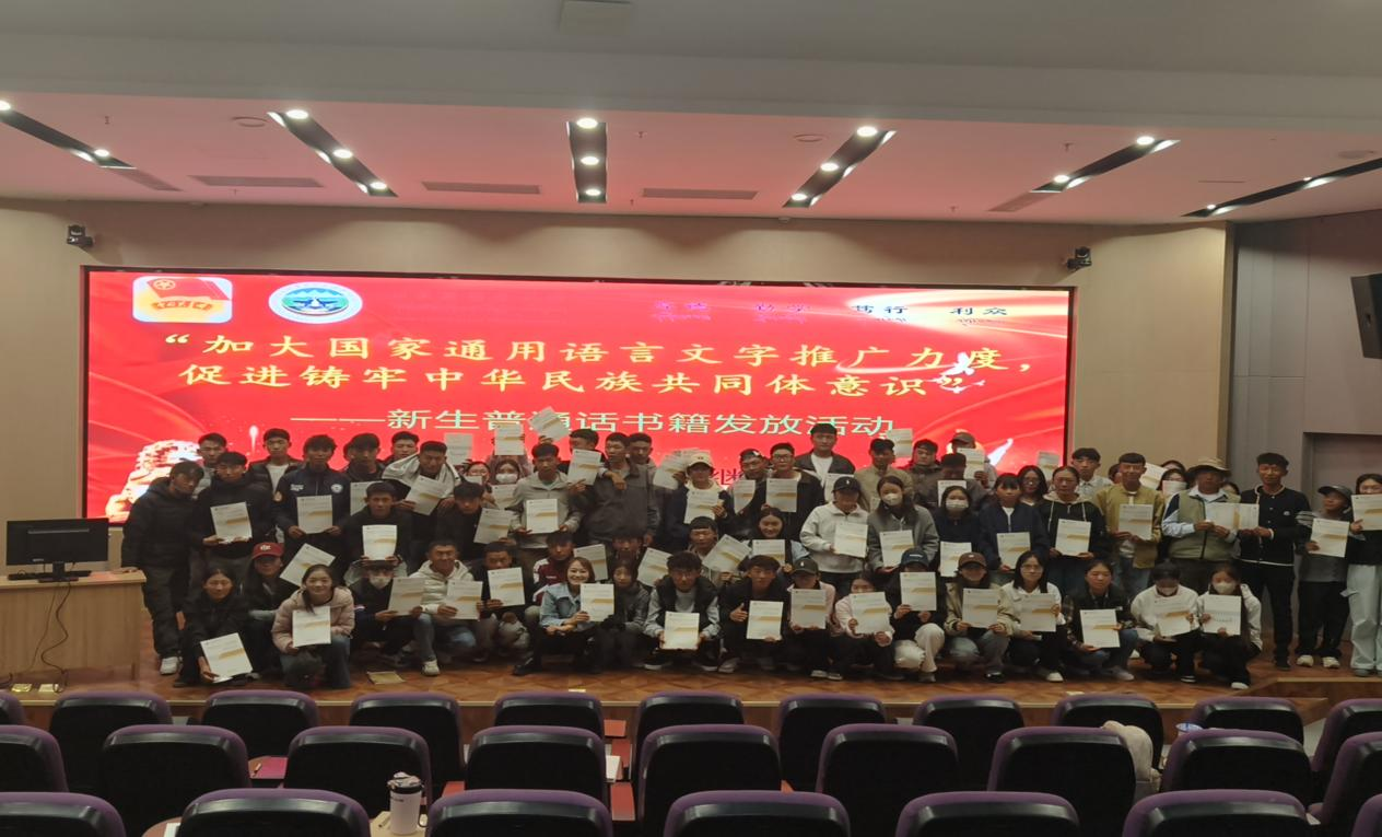 活动现场,继续教育部团总支书记金珠措姆老师将精心挑选成册的国家通用语言文字书籍逐一发放到学生手中,旨在帮助学生提升语言文字应用能力,感受中华优秀传统文化的魅力,增强文化认同感与民族自豪感。