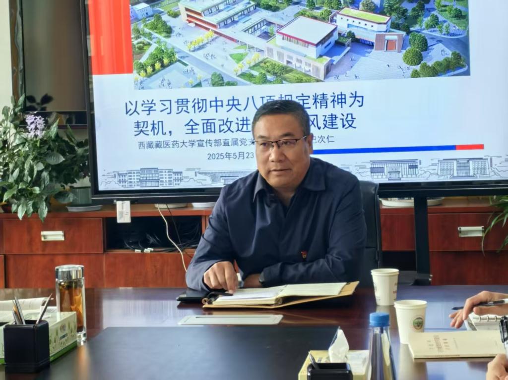 边巴次仁结合部门实际,就深入贯彻中央八项规定精神学习教育提出三点要求:一是坚持问题导向,推进学查改一体落实。聚焦宣传工作中的重点难点,针对梳理出来的问题清单、任务清单和责任清单,切实做到以学促查、以查促改、以改促建,确保学习教育与问题整改同频共振,切实提升宣传工作效能。二是狠抓作风建设,全体党员要对照中央八项规定精神,深入开展自查自纠,重点针对形式主义、官僚主义等作风顽疾立行立改,坚决杜绝敷衍应付,以严实作风为宣传工作高质量发展保驾护航。三是强化学用结合,主动深入师生一线开展调研,广泛听取意见建议,精准对接师生需求,将学习教育成果转化为解决宣传工作实际问题的硬招实招,不断提升学校宣传工作的服务水平和师生满意度。